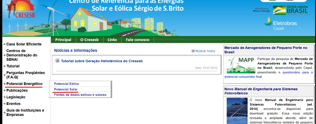 Como obter os dados de radiação solar no site do CRESESB (HSP)