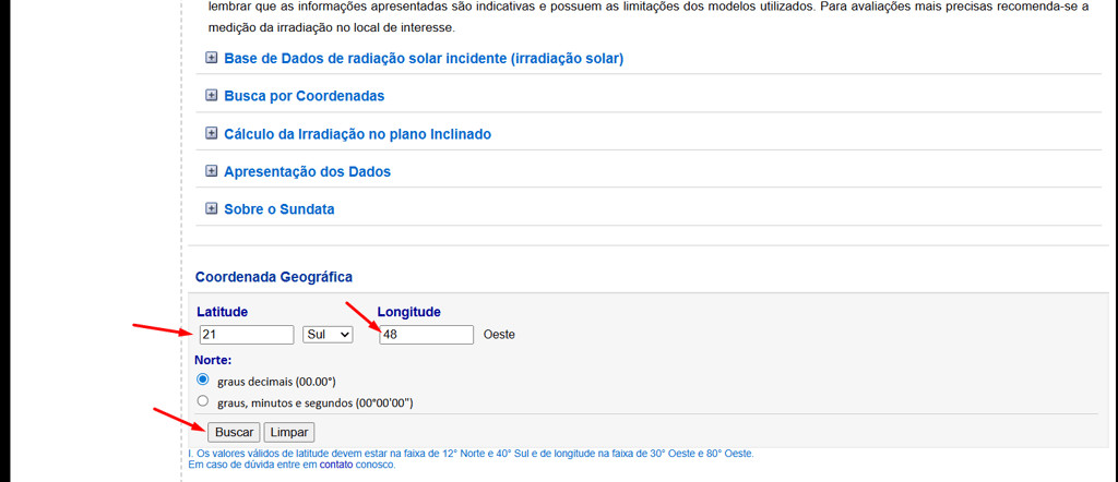 👉 https://cresesb.cepel.brNo menu, procure pela opção relacionada a dados solares / irradiação solar.